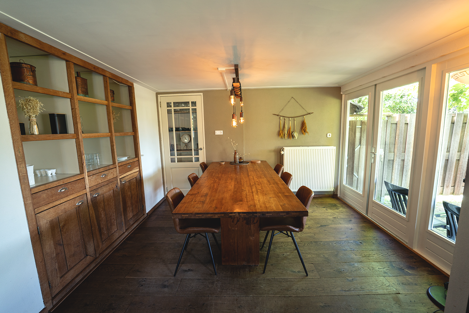 De open keuken is voorzien van een kookeiland, vaatwasser, oven, magnetron, nespresso-en koffiefilterapparaat (filter maat 4), waterkoker en een grote koelkast met vriezer. De eethoek heeft een eettafel waar 6 personen aan kunnen zitten. Het terras beschikt over een tuinset voor 6 personen.