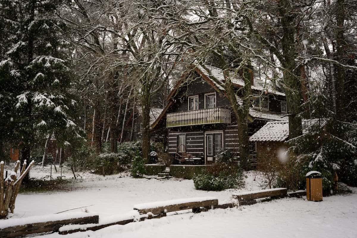 Ook op het park zelf is goed te zien wat de sneeuw met de omgeving doet. De huisjes steken scherp af tegen het witte decor en het bos oogt rustiger dan normaal. Door de sneeuw en kou verloopt alles in een lager tempo en voelt het park overzichtelijker aan.